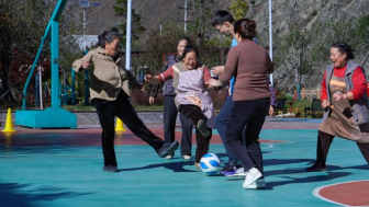 11月4日,在甘孜州泸定县沙湾村党群服务中心篮球场,随着机器人“舵轮”作为开球手踢出“科技一球”,来自成都信息工程大学自动化学院的师生党员和沙湾村的党员、群众一起开展了一场人机交互、充满智趣的足球赛。场上服装各异,上一刻还在球场边表情严肃的大叔、系着围裙的大妈、学校的思政辅导员、青春洋溢的大学生都奔跑在球场上,相同的是欢快的笑脸和参与健康活动的热情。