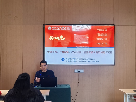 党课结束后,两院围绕“党建与业务融合”开展经验交流。四川现代职业技术学院智能制造学院“双带头人”徐平同志党支部书记工作室以《党建引领,产教赋能,校企同频,培养智能制造领域能工巧匠》为主题交流分享,提出“思想引领—团队攻坚—实践育人”三位一体工作模式;自动化学院机器人工程教师党支部书记王振玉同志工作室以《坚持“一核心、两重点、三融合”全力推进党支部书记工作室建设》为主题进行了深入交流,探讨了党支部在科研攻关、课程思政中的先锋作用。双方一致认为,党建工作需与教学、科研深度结合,以高质量党建赋能人才培养。