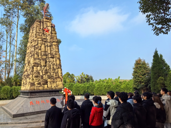 成都战役馆是四川省国防教育基地,馆内通过文物、图片、场景复原等方式,全面展示了1949年成都战役的历史全貌。在讲解员带领下,通过文物史料与多媒体展陈,师生们系统学习了解放军解放成都地区的军事部署,了解了成都战役的历史背景与战略意义。在纪念馆广场誓词墙前,全体党员高举右拳重温入党誓词,铿锵誓言回荡在陵园上空;随后,师生们参加缅怀仪式,向烈士敬献鲜花。
