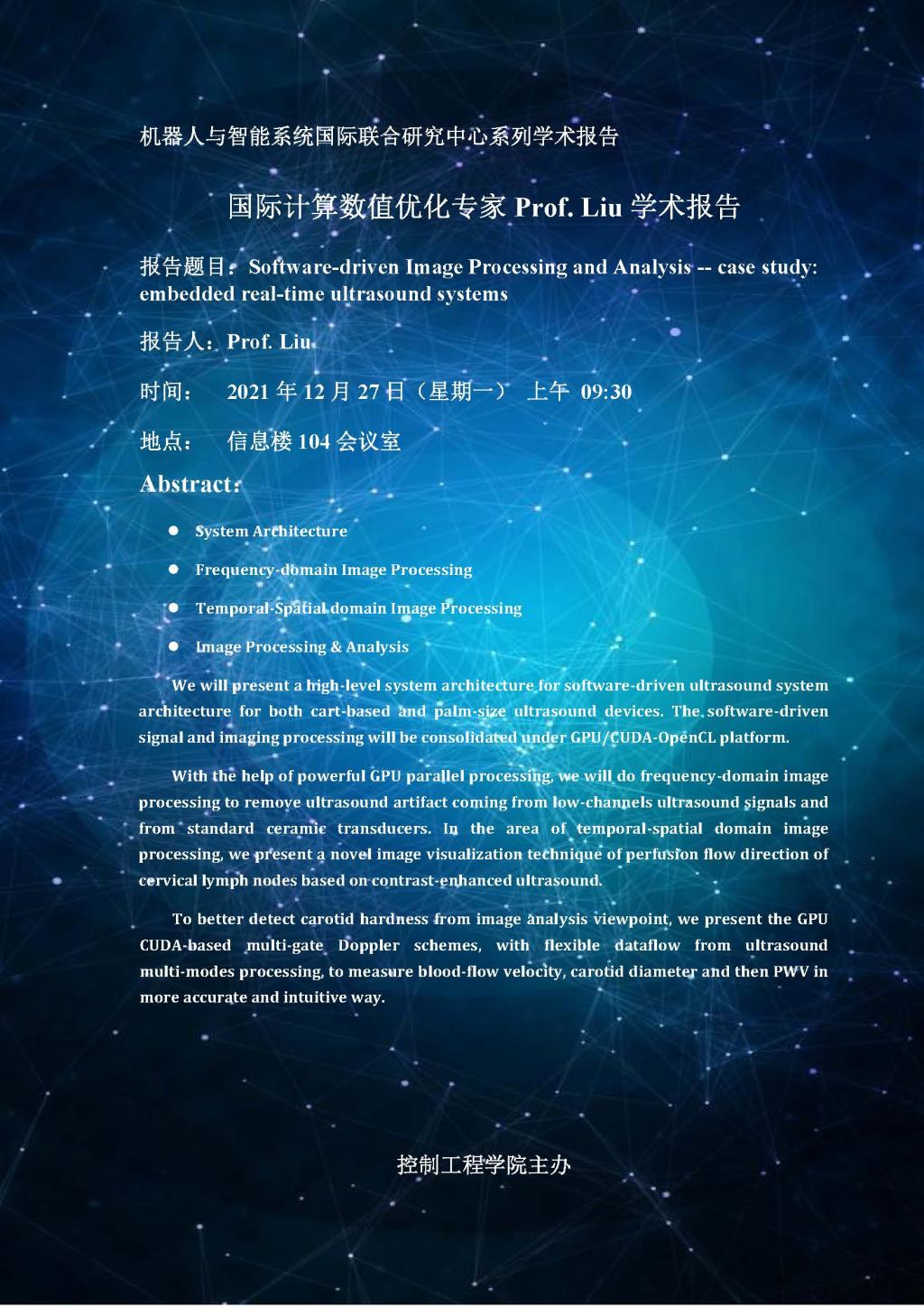 机器人与智能系统国际联合研究中心系列学术报告国际计算数值优化专家Prof. Liu学术报告